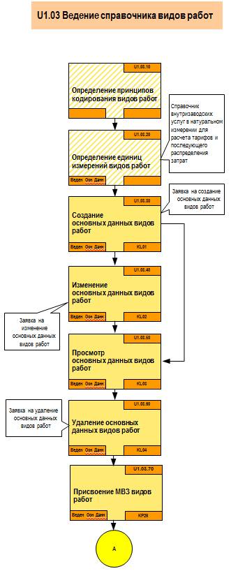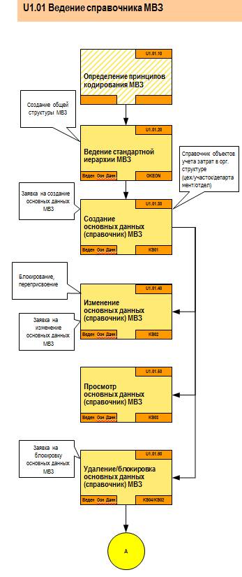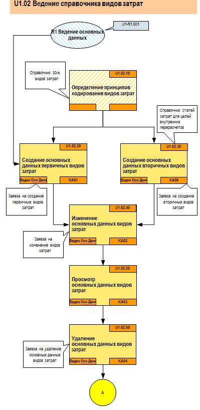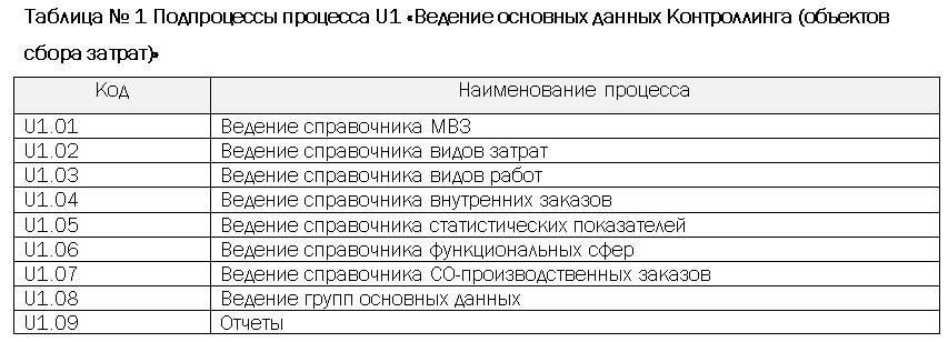 Процесс U1 «Ведение основных данных Контроллинга (объектов сбора затрат)» включает в себя следующие подпроцессы, определяющие последовательные этапы ведения основных данных: