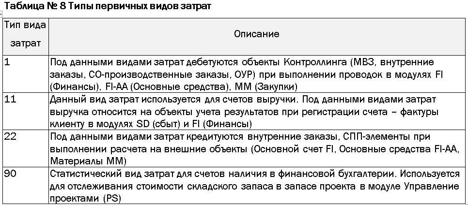 В системе SAP ERP для ведения аналитики по затратным счетам используются виды затрат. При определении видов затрат различаются первичные и вторичные виды затрат.
