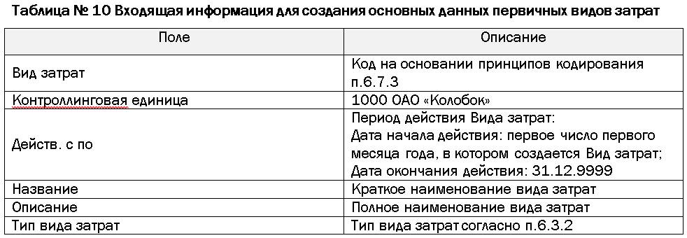 Определение принципов кодирования видов затрат (U1.02.10)
