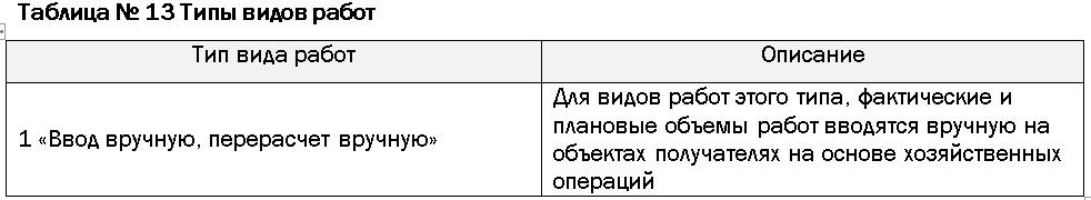 В каждом виде работ определяется тип вида работ, который указывает, каким образом будет рассчитываться объемы. В рамках проекта КИС ФХД будут использоваться следующие типы видов работ: