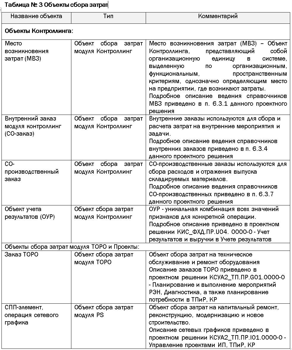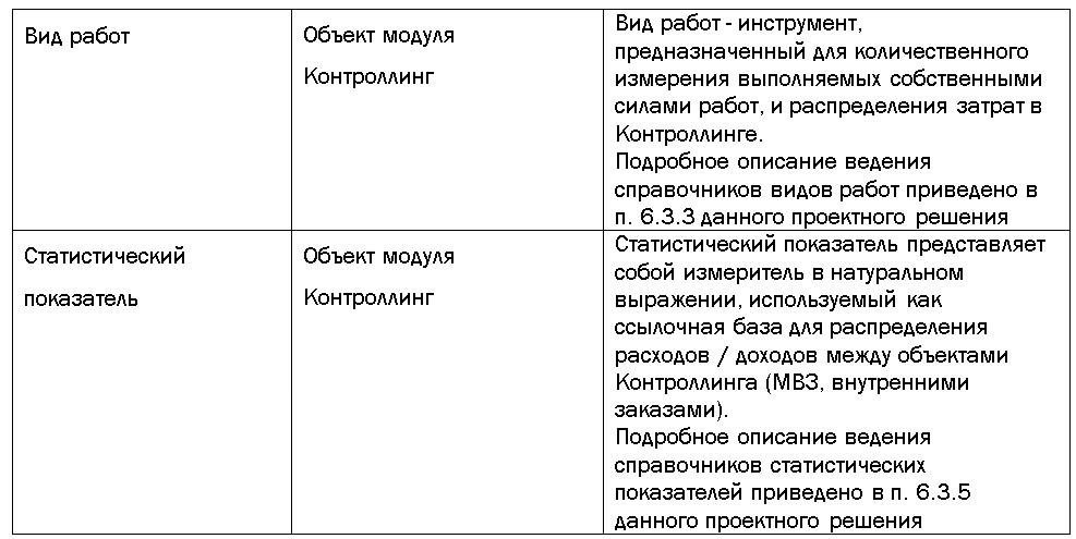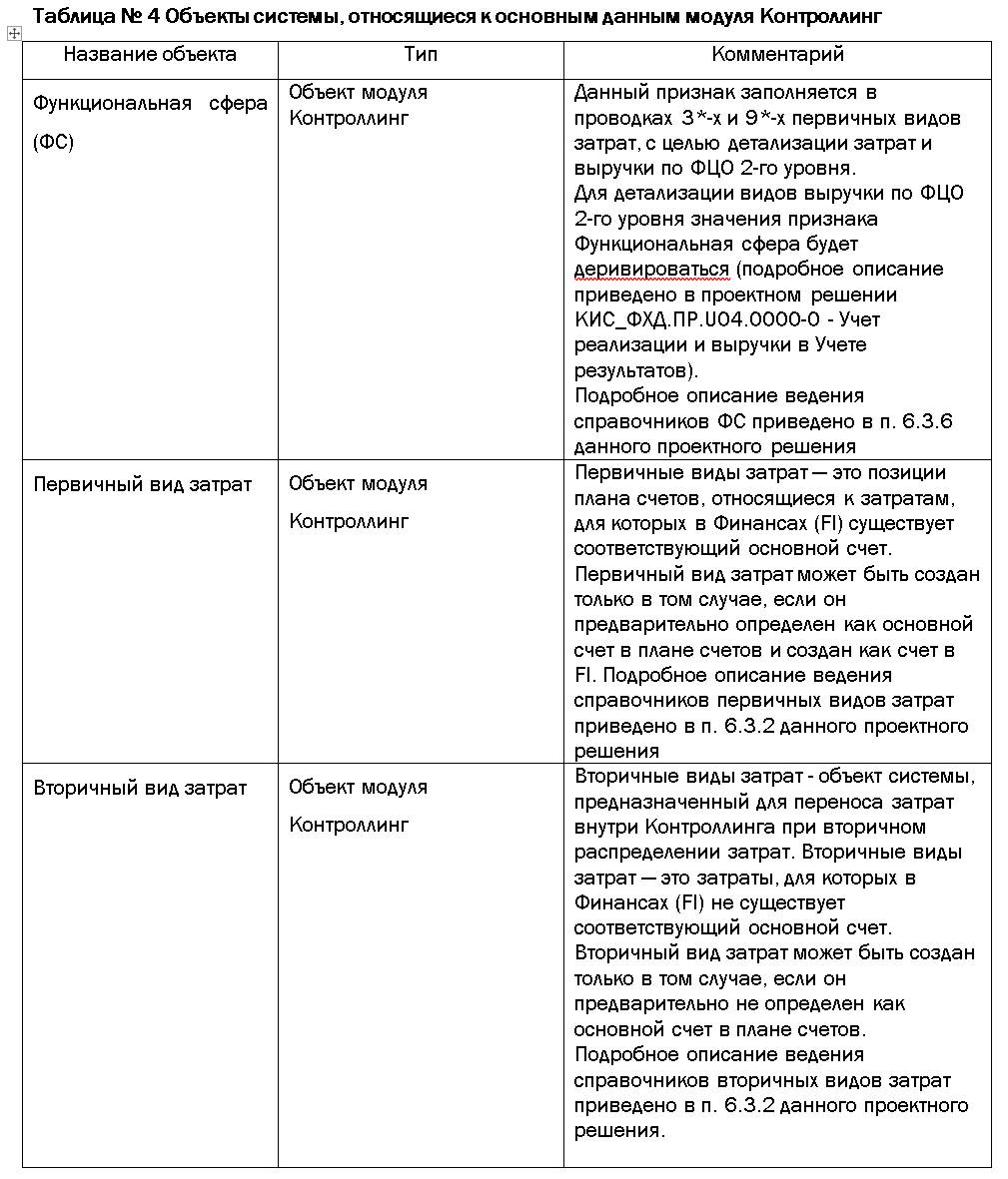Остальные объекты системы, относящиеся к основным данным модуля Контроллинг, приведены в таблице № 4: