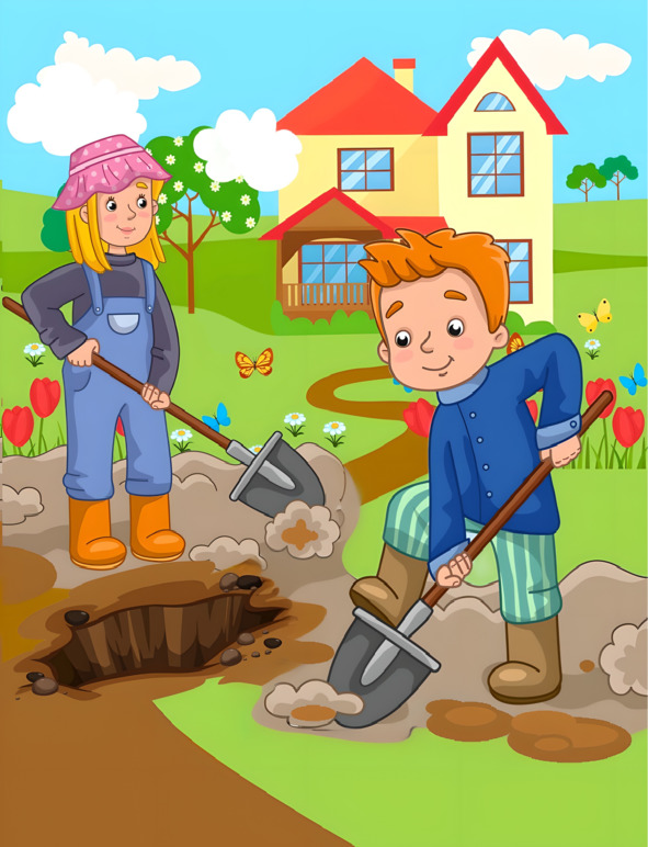 Мы сегодня под малинойТри часа искали клад.Я вскопала половину,А потом продолжил брат.Мы сундук найти мечтали,Или глиняный горшок,А нашли лишь болт из стали,Червяка и корешок!Вряд ли что-то есть в картошке:Там бы дедушка нашел.Нам бы клада хоть немножко —Вот бы было хорошо!В нём оружие, и слитки,И, возможно, шоколад!Всё, копаем у калитки —Вот где точно будет клад!