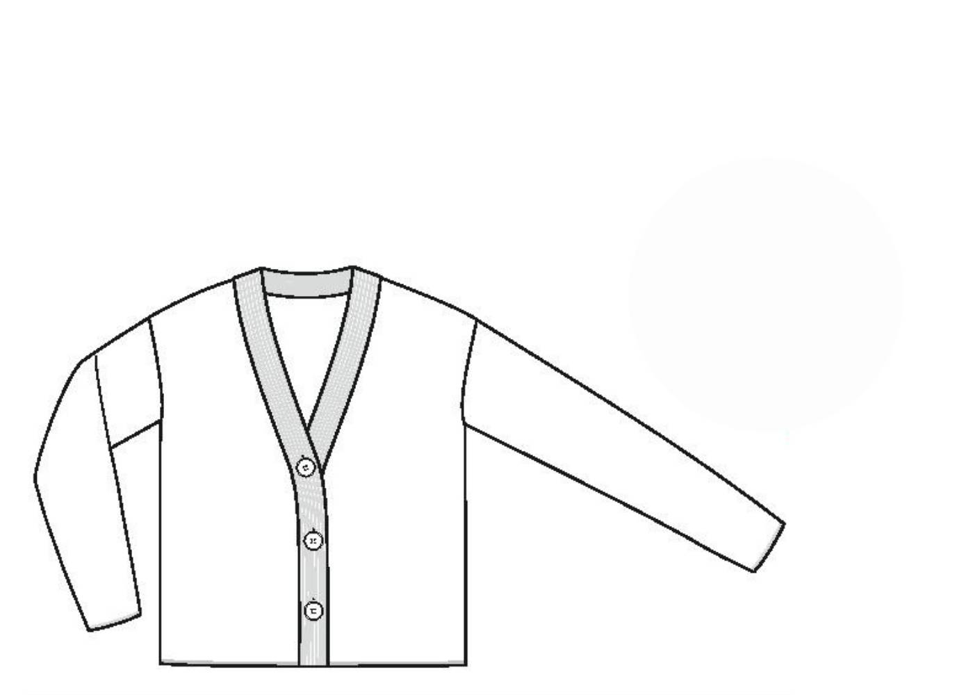 Способ визуализации изделия, которое предварительно разложено на всю ширину на горизонтальной плоскости. Такой рисунок чаще всего используется в конструкторской документации, для передачи ширины изделия по основным конструктивным участкам. Здесь нет «невидимой» зоны. И даже можно провести измерение изделия под проймой, обозначить конкретные размеры. На рисунке 1.15 женский кардиган разложен на всю ширину на плоскости. На рисунке 1.16 это же изделие показано на фигуре на фотографии и в техническом рисунке.