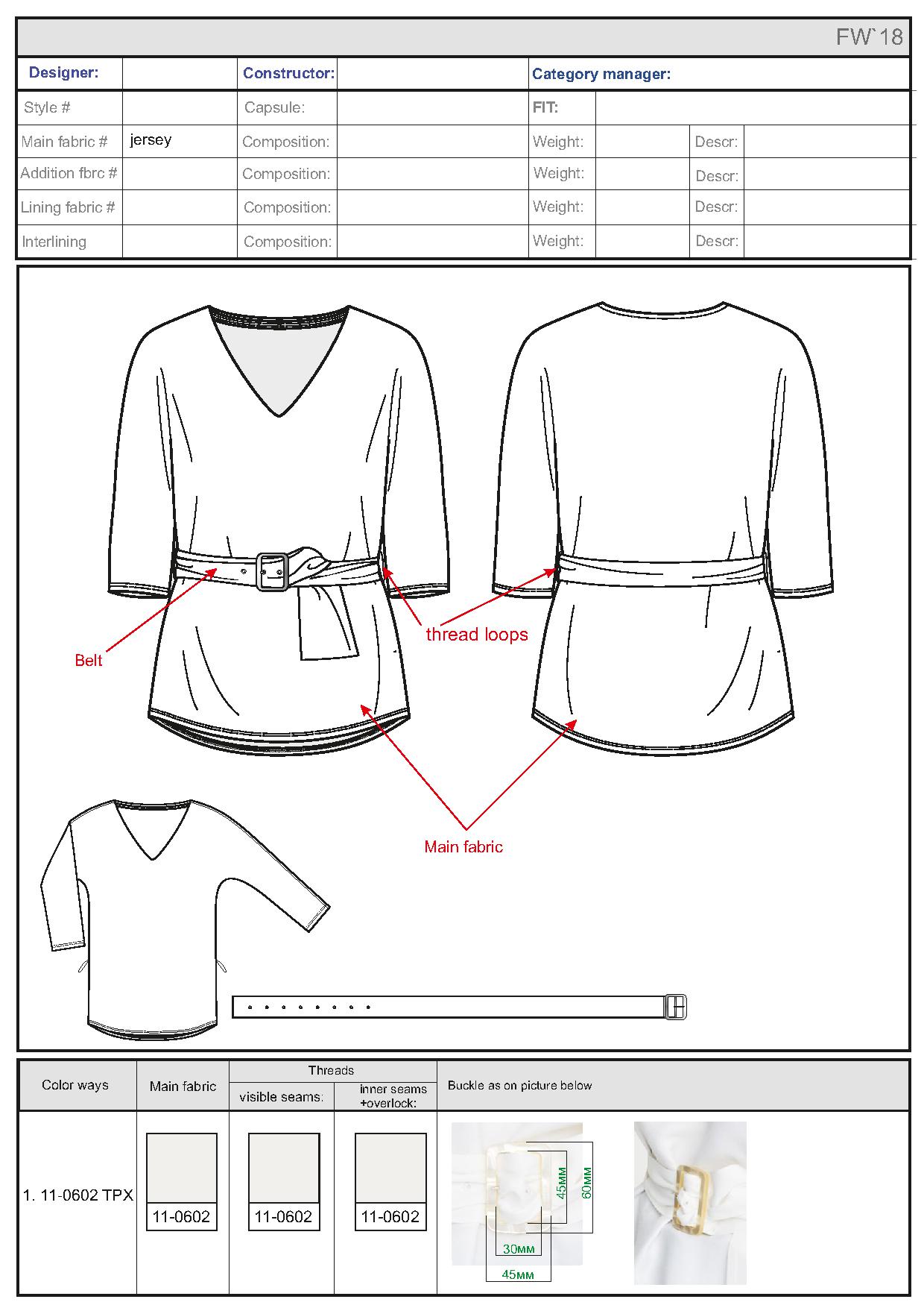 Рисунок 1.9 – Технический рисунок блузки в документации (artwork) для зарубежной компании, дизайнер Алина Мороз