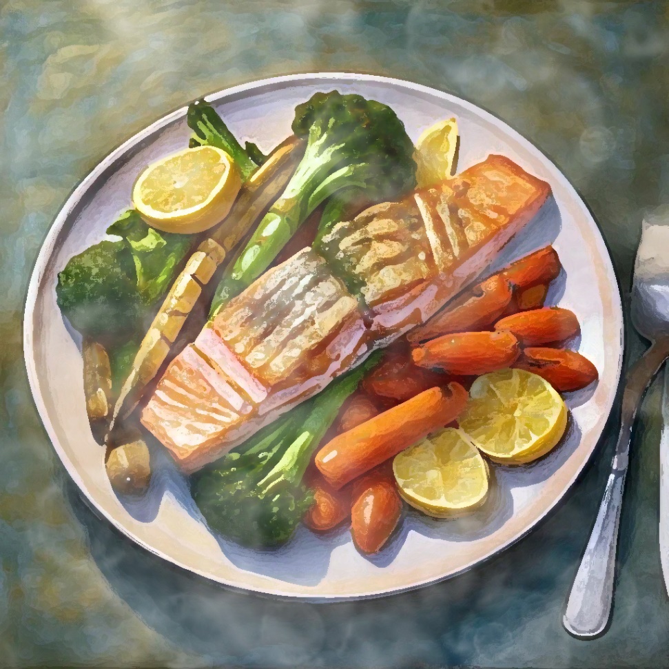 – Сегодня на ужин запечённая в духовке рыба с овощами. Всем приятного аппетита! – сказал папа, раскладывая еду по тарелкам, пока мама оформляла стол.