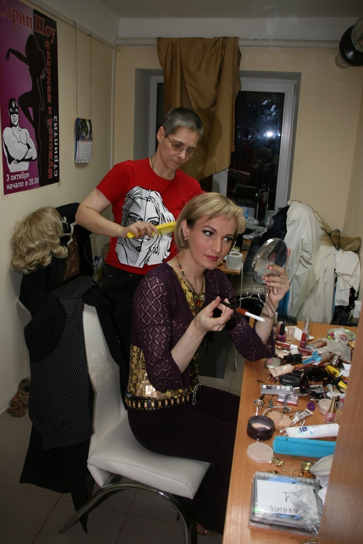 Забавный был момент. На той выставке Жани сопровождали две девушки из его фан-клуба – свита звезды. Они же были с нами и в гримерке. Обнаружилось, что нужно подшить деталь костюма, сущая мелочь, требовалась всего пара стежков. Дома мы как-то это пропустили. И второе – изображая Патрисию, Жани всегда прикуривал тонкую дамскую сигарету в мундштуке, а тут под рукой не оказалось зажигалки. Так вот, зажигалки мы немедленно, не сговариваясь, протянули ему со всех сторон, а вот иголки и ниток не оказалось ни у одной из нас. Благо, они, как раз, имелись у Жана. Он пристально оглядел нас и вздохнул: «Ну вот и кто тут, после этого, женщина?!»