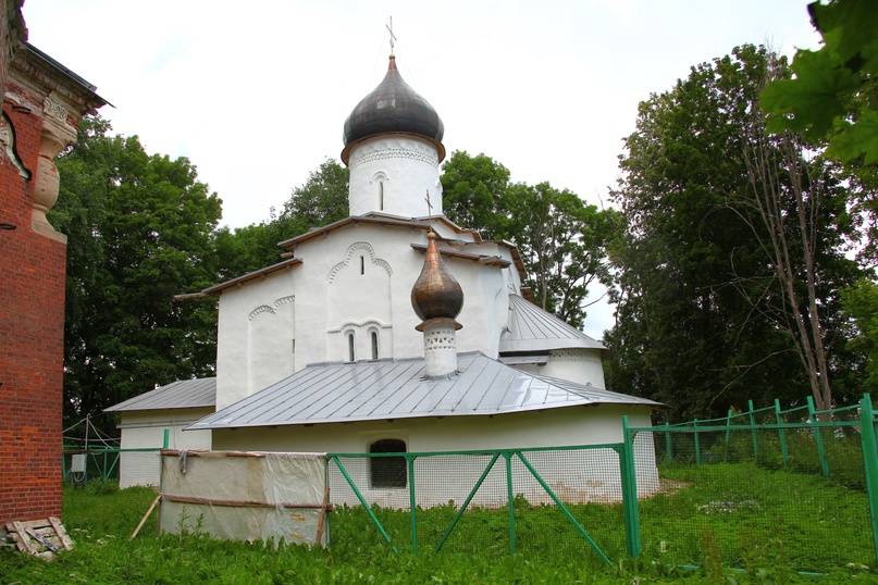 Церковь Псковской школы зодчества. Материал – известняковая плита. Единственный из Псковских храмов с восстановленным 32-х скатным покрытием. Древняя живопись в интерьере представляет собой стенопись по сухой штукатурке. Она была результатом труда шести-семи псковских мастеров-иконников и миниатюристов.