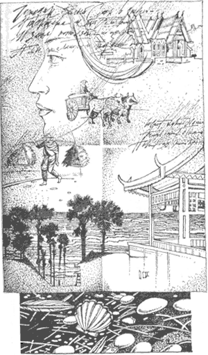 Совсем другой, фантастически пестрой, оказалась обстановка китайского дворца, построенного в дар королю одним из разбогатевших сыновей небесной империи. Здесь Леку и Кате подали обед из блюд сиамской и китайской кухни. Потом Лек провел Катю по этому сказочному чертогу с узорчатыми изразцовыми полами, колоннами в ажурно-тонкой резьбе. На алтаре возвышалось изваяние безмятежного Будды. Растянутые мочки его ушей символизировали мудрость и силу, протуберанец огня взметался над выпуклостью черепа, плечи, «похожие на голову слона», округлые формы тела, неподвижная поза погруженного в радости нирваны…