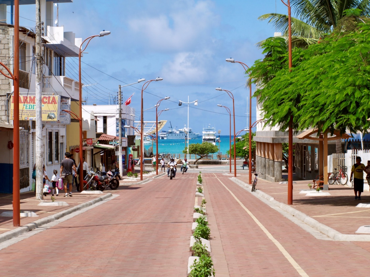 Наконец-то мы доехали до Пуэрто-Айоры. Город назван в честь бывшего президента Эквадора Isidro Ramón Antonio Ayora Cueva. Немного о городке. Бухта, где он образован, была открыта моряками, потерпевшими кораблекрушение в другой части острова и пробившимися через кактусовые леса к более-менее удобному выходу к океану. Через шесть месяцев их спасли, но никакой инициативы по дальнейшему освоению удобной бухты потом не было предпринято.