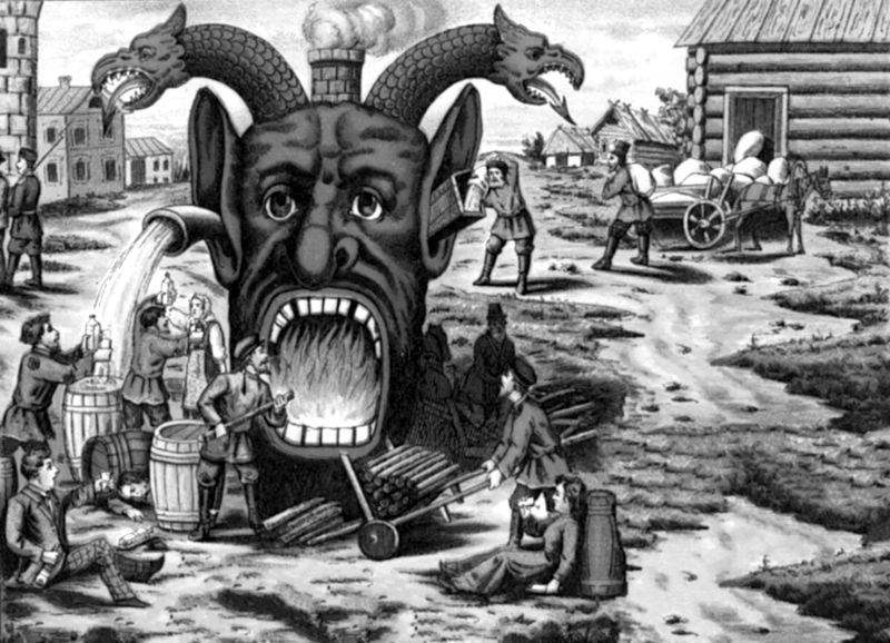 В середине 19 века произошло немыслимое: массовое распространение обществ трезвости, что привело к резкому падению государственных доходов. Министр финансов распорядился запретить городские собрания и сельские сходки трезвенников. Главной причиной отказа пить была дороговизна хлебного вина: дурное вино предлагалось откупщиками по высокой цене. Люди публично давали обет в церкви не пить, и даже попытки бесплатной раздачи водки не принесли результатов.