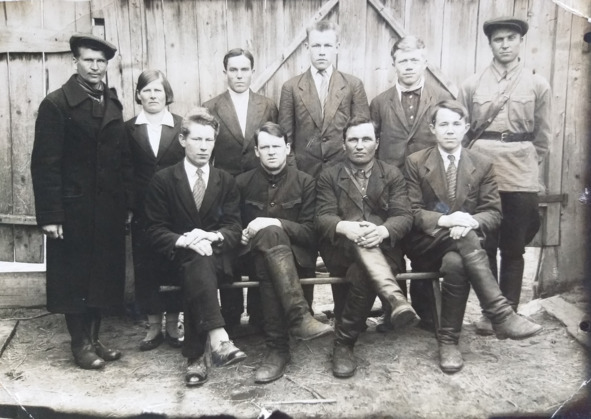 На обороте фотографии 1938 года сделана надпись «аппарат леспромхоза» в Пещёре. Пётр Дмитриевич во втором ряду (третий слева) с коллегами по работе.