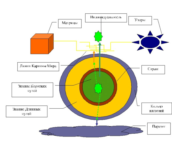 Мы говорили о том, что звучание этой частички слишком слабо для того, чтобы прорваться сквозь «правильные» сценарии. Но существование в Поле Паразита дает нам очень хороший шанс. Неприятие действующих в нём Правил дает нам возможность их критического осмысления, освобождения от данных ему ОБЕЩАНИЙ. А это создает плацдарм для осмысления и освобождения от обещаний более глубоких уровней. При этом мы действуем изнутри, в соответствии с собственной ИНДИВИДУАЛЬНОСТЬЮ, что создает основу не только для освобождения от Кольца ИЛЛЮЗИЙ, но и от Кольца СТРАЖА. Для соединения «верхнего Я» и «нижнего Я» в единое целое, способное существовать не только в истинной реальности, но и в любой области нашего мира.