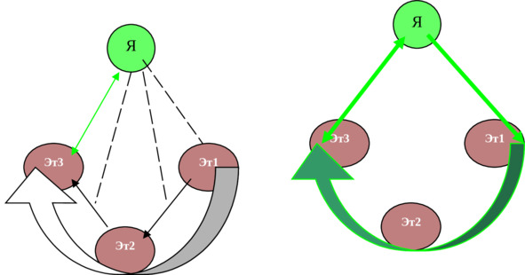 Предположим, ваш начальник (собеседник, партнёр) принизил ваши заслуги. Показал вам, что в его глазах вы не такой умный (красивый, обаятельный), как вы сами себя считаете. И если мнение собеседника значимо для вас, вы не можете оставить всё как есть: почти наверняка вы предпримете какие-то усилия для того, чтобы заставить его признать ваши действительные или мнимые заслуги. Иногда эти усилия громадны, но их причина находится вне вас. Вы делаете что-то не потому, что это интересно и не потому, что вы заинтересованы в результатах действия, а чтобы восстановить свой образ в «буферной зоне», в зоне ПАРАЗИТА. Поэтому вся энергетика ваших действий без остатка достаётся ПАРАЗИТУ.