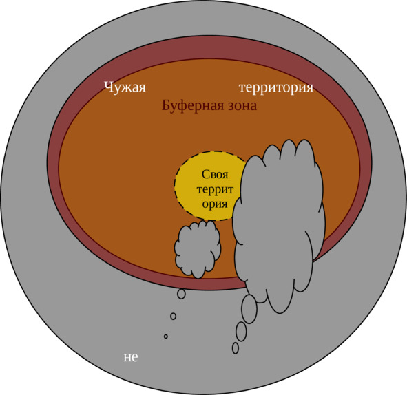 Мы находимся в «буферной зоне» всегда, когда добровольно выполняем БЕССМЫСЛЕННЫЕ действия. Когда поддерживаем разговоры ни о чём, когда сидим на всякого рода «дежурных» совещаниях и других мероприятиях, когда надеваем «униформу» (в широком смысле этого слова). То есть всегда, когда мы не можем определить конкретную, реальную цель не только наших действий, но и действий других людей.
