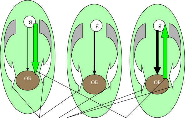 И та и другая образуют нашу КАРТИНУ МИРА. Но в точке РАССУДКА мир для нас – набор узнаваемых элементов, образов объектов внешнего мира. А в точке ДЕЙСТВИЯ мир – это множество «нитей», соединяющих наше «я» с объектами внешнего мира. Это отображение КАРТИНЫ МИРА, но здесь главное – не сам объект, а связи, соединяющие нас с ним. То есть наша способность воздействовать на объект и его способность воздействовать на нас.
