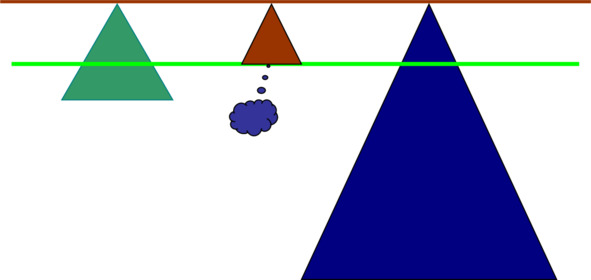 Представьте ЗОНУ ВОЛИ как поверхность воды, в глубины которой уходит всё, относящееся к нашей Правой стороне, а над поверхностью поднимается всё, относящееся к нашей Левой стороне. С этой точки зрения наше «я» – льдинка, плавающая по поверхности воды, у которой мы осознаём только ту часть, которая находится на поверхности. И с этой точки зрения все льдинки почти одинаковы. Разумеется, есть льдинки побольше и поменьше, но все они сопоставимы по своим размерам. Хотя бы потому, что над «поверхностью», над линией ВОЛИ находится ещё одна линия, ограничивающая размеры воспринимаемой нами Картины мира извне. Внешняя граница, определяющая масштабы нашего взаимодействия с миром.