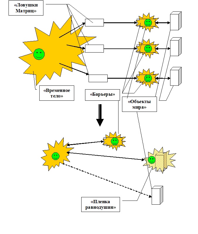 Этот механизм действует и в обыденной жизни – например, нас привлекают образы разбойников и пиратов – тех, кто стоит по другую сторону закона. Потому, что мы знаем – за каждым барьером есть частичка Силы, к обладанию которой мы и стремимся. На самом деле это наша Сила, связанная с обретением собственной формы и позволяющая нам прикоснуться к любому объекту нашего мира – и к тем мирам, путь в которые он открывает. Понимание этого есть у многих – отсюда и стремление преодолеть «барьеры». Но даже если нам удается сделать это, мы попадаем в последнюю ловушку Матриц – создаем «пленку равнодушия», отделяющую нас от реального мира, а значит и от собственной формы ещё надежнее, чем «барьеры».