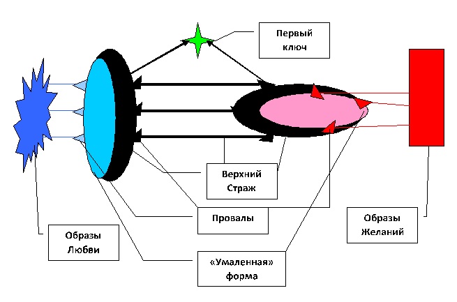 Понятно, что долго жить в таком состоянии невозможно. Поэтому все люди поступают просто – они отделяют от себя свою большую часть. Ту, в которой в которой «провалы» чувствуются почти на физическом уровне. Становятся маленькими – так же, как и «все люди», то есть привыкают довольствоваться тем, что у них есть. Но скрытая часть при этом не исчезает – она продолжает существовать и управлять всей их жизнью. И у неё есть свои цели – ей хочется стать больше. Поэтому она выстраивает жизнь человека так, чтобы он отделил от себя как можно больше – это главная причина, по которой нам приходится «мучиться». Но дело не только в «мучениях» – скрытая часть или Верхний Страж находится на границе, отделяющей Пространство от Времени. Поэтому именно ей достается Сила Первого Ключа, которую она, в большинстве случаев, использует против нас.