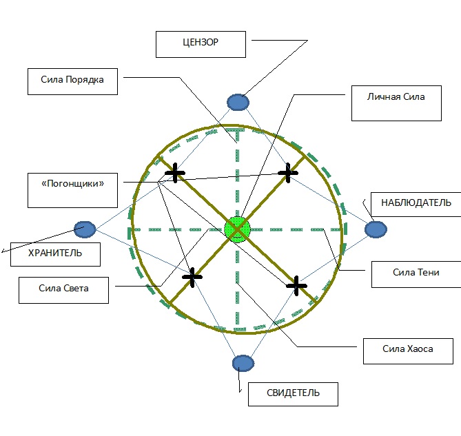 Наша Личная Сила распространяется по линиям «прямого креста». По тем линиям, которые соответствуют вертикальной и горизонтальной Линии Воли. А «погонщики» как бы отделяют нас от него – мы стремимся двигаться в сторону двух линий одновременно. Делать то, что вроде бы решили сделать и делать то, чего нам «хочется» в данный момент. В результате наш крест становится «перевернутым», и мы оказываемся отделены от большей части нашей личной Силы. Более того – мы отделены от «общей сети» и поэтому можем «позвонить» только тем, кто у кого крест перевернут, так же, как и у нас. А весь реальный мир оказывается за пределами нашей достигаемости. Вернее так – все оборачивается односторонней зависимостью. Мы зависим от плохого настроения близкого человека – оно непосредственно воздействует на нас, но не можем напрямую изменить его. То же самое со всеми остальными неприятностями – плохим настроением, финансовыми трудностями, увольнением с работы и прочим – они на нас действуют напрямую, а мы на них действовать не можем. Поэтому большинство людей находится в позиции «зашиты» – а из этой позиции победить невозможно.
