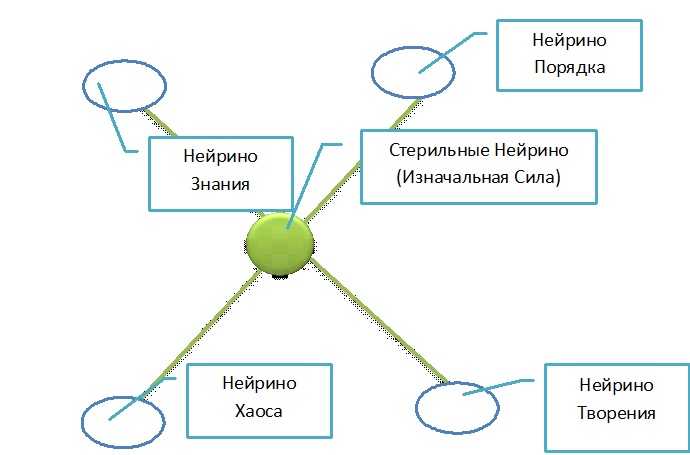 Нейрино Порядка является основой Пустотного Тела – нашего сознания. Нейрино Творения оказываются центром Тела Тени – нашего Пространственного Тела. Нейрино Хаоса становятся основой нашего физического тела, а Нейрино Знания – центром Тела Света, нашей волновой формы. Вернее, так могло бы быть, если бы не наклон «креста Воли». В действительности наша структура выглядит так:
