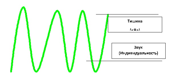 В определенном смысле «звук» образует ИНДИВИДУАЛЬНОСТЬ любой «ноты», в нем заключена вся его энергия, а «тишина» является внешним отображением этого звука, связанным с ним, но лишенным внутренней силы. Это своего рода «я» ноты.