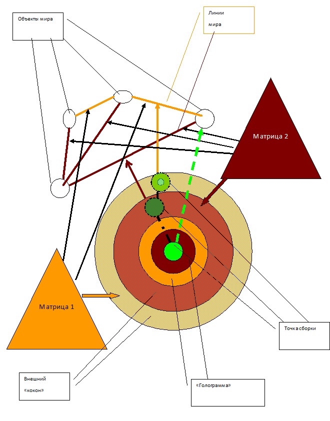 В обычных условиях движение нашей точки сборки определяется извне, теми матрицами, с которыми мы взаимодействуем. Так, если в крови увеличивается концентрация половых гормонов, то «нерадивость» сотрудницы отходит на второй план, и мы послушно принимаем форму тела ПОЛА. А если наш начальник устроил нам «разгон», то «привлекательность» этой сотрудницы становится скорее раздражающим фактором. Всё это происходит само, без нашего согласия и участия. Изменения формы кокона подчиняются движению СИЛ, которых мы не видим, а все дальнейшее – это только процессы передачи нашей СИЛЫ той матрице, под действием которой мы оказались.