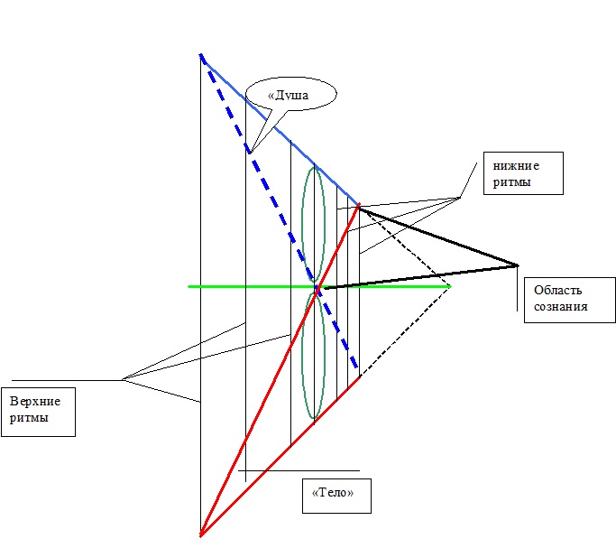 Всё, относящееся к высшим ритмам, находится вне сферы восприятия человека и противоречит ей. Я уже говорил о «зоне реальности», которая как раз и относится к области высших ритмов и «зоне фантазий», связанной с низшими ритмами человека. Так вот, проблема не в том, что они различаются, а в том, что они противоположны.