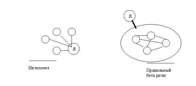 Правильный бета ритм – это исключение себя из описания мира. В графической форме разница выглядит следующим образом: