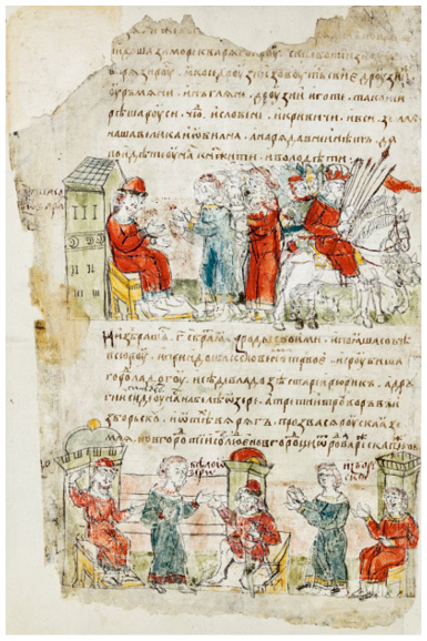 Призвание варягов, миниатюры из Радзивилловской летописи, конец XV века.