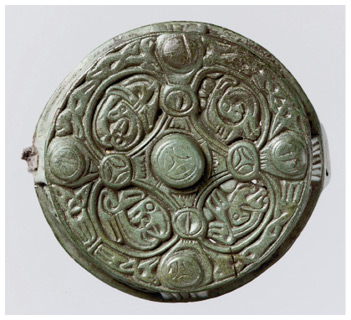Круглая брошь с острова Готланд, ее могла носить женщина-викинг, чтобы закрепить шаль на воротнике, ок. VIII века.