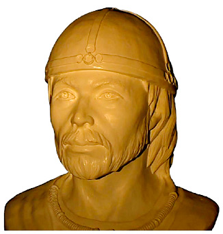 Скульптурная реконструкция по черепу воина из погребения Ундрих, авторы: Е. В. Веселовская, О. И. Алехина.