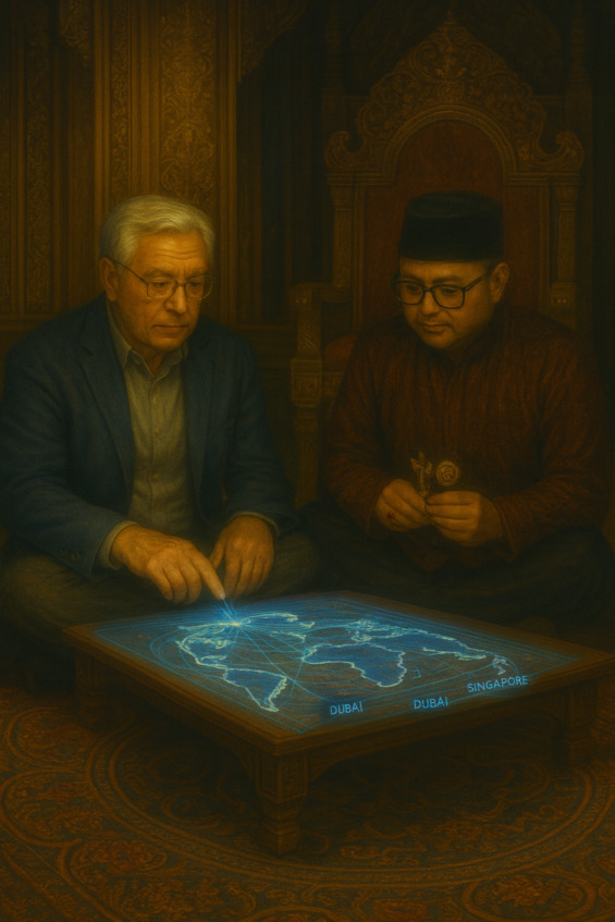 Ян посмотрел на него, и на миг они оба замолчали, прислушиваясь к тишине, в которой словно шептали стены. Ян раскрыл ноутбук, вывел на экран структуру цифровых коллатеральных счетов. Линии, соединяющие Дубай, Лондон, Сингапур, Джакарта мягко мерцали, будто дыхание невидимой сети.