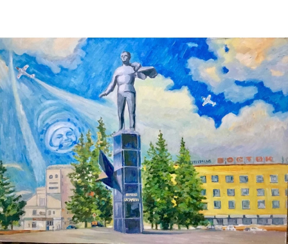 Ты нарекался Гжатской слободой.И, непокорный времени, ветрам,Был призван в строй Россией молодой,И утверждён велением Петра.Ладьи с зерном уйдут на край землиНасущным хлебом накормить столицу.И, как преддверье будущей зари, —За мирной баркой лунный след струится.Хлебнул ты лихолетий огневых.Но, зубы стиснув, слёз не выдавал.И шёл на брань, и вёл детей своих, —И смерть, и славу с ними принимал.К победам шли твои богатыри,Землёй родною возрождаясь в силе,Чтобы рассвет космической зариУлыбкой звёздной отразился в сыне.Мой город милый! Вновь ты устремлён!И пусть твой путь тернист и многотруден, —Ты держишь связь пространства и времёнЖивым трудом простых, негромких буден.Уходят к звёздам, в небо корабли.И в каждом взлёте их тебя частица, —Скупой росток неведомой зари,Что нам с тобой пока ещё не снится!Тропинка к дому