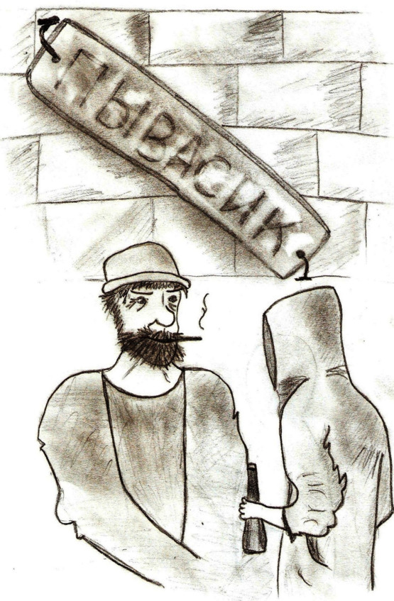 Крепко задумавшись над сложившейся ситуацией, я не сразу заметил присутствия рядом с собой неопределённого возраста существа, разглядывавшего с любопытством меня и вещи, которые я выкинул. Оказалось, что это существо вот уже пять минут пытается со мной заговорить, периодически намекая о магазине, что находится за углом, даже умоляет посетить его, а особенно отдел винно-водочной продукции.