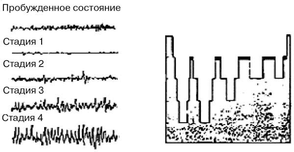 Но факты свидетельствуют о том, что никакой глубины сна не имеется, так как активность физиологических переменных увеличивается или уменьшается согласно стадиям, описанным ниже.