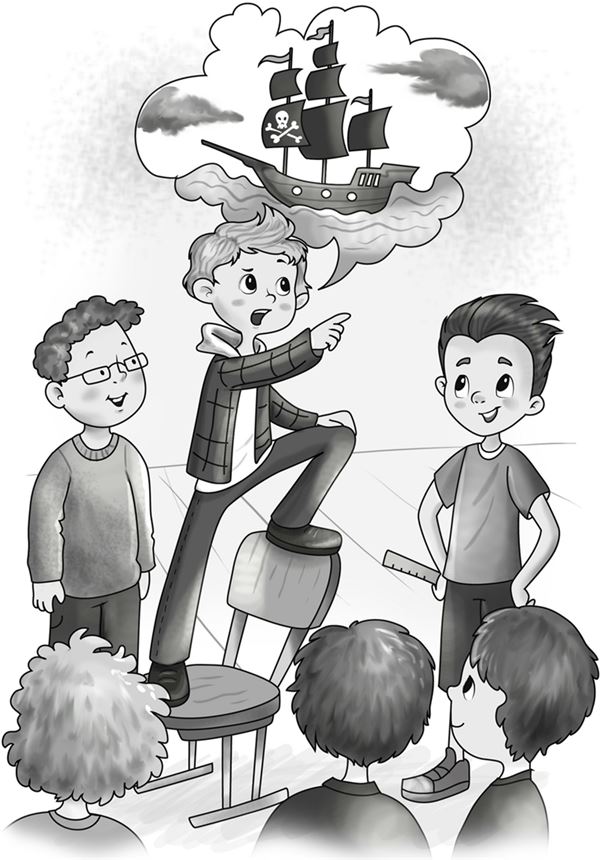 Вытащив из розового рюкзачка учебник, Лёля кладёт его на парту и вздыхает. Жаль, конечно, что этот Юльчик (так она его про себя называет) не обращает на неё никакого внимания. Очень бы ей хотелось подружиться с ним. Вот он… Явился… Вбежал в класс как ненормальный… Раскраснелся-то… Наверное, от бесконечных рассказов про пиратов…