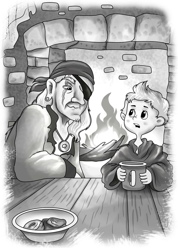 Пока хозяин гремел металлическими кружками, налаживая чай, мальчик исподволь рассматривал сурового на вид старика. В мочке одного уха у него блестела серебряная серьга, а на шее болтался амулет: расплющенная свинцовая пуля в серебряной оправе. Седые волосы были собраны сзади в косу. Наискось, через всю правую щёку, тянулся безобразный шрам, а левый глаз закрывала чёрная повязка.