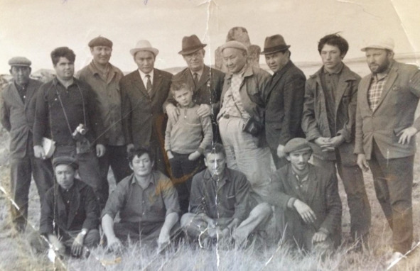 ЦКАЭ под руководством Алькея Маргулана (четвёртый справа). Третий справа – отец автора книги – Бакыт Сейтжанов, парторг совхоза Аманкельдинский. (Фото из семейного архива автора).