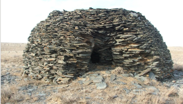 Наряду с каменными изваяниями тюркского периода в Улытау находятся архитектурные сооружения типа «дын»35. Дыны, дынгеки или уйтасы – это архитектурные строения так называемого доисламского периода, а если быть точнее, огузо-печенежского периода, с характерным строением, напоминающим юрту. Строительным материалом являлся степной «дикий» камень, из которого воздвигались сооружения, отличавшиеся простотой архитектоники, отсутствием декора и характерной только для Центрального Казахстана.