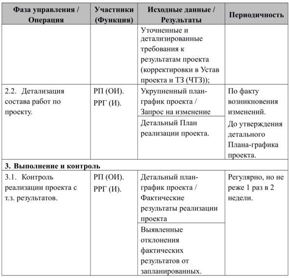 Описание основных операций группы управления сроками проекта (сгруппированные по фазам управления) приводится в Табл. 3.3.