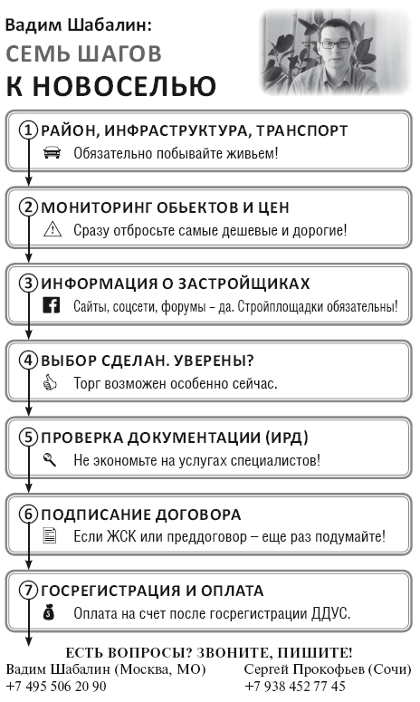Обычно новостройки покупают решительные и позитивные люди. И они рассчитывают на то, что с их приобретением никаких проблем не будет. Мы желаем всем своевременного получения ключей от квартиры и оперативной регистрации права собственности в едином государственном реестре. Но не упомянуть в книге про проблемные новостройки было бы не правильно.