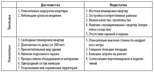 Технология строительства подобных домов примерно такова: после устройства предусмотренного проектом фундамента (в большинстве случаев в него интегрирован подземный гараж-стоянка) на площадку завозится и устанавливается опалубка для стен, колонн и перекрытий (стационарная, подъемная или подъемно-переставная). Одновременно с этим организуется растворный узел по изготовлению бетона со специальными температурными и быстроотвердевающими добавками, который укладывается в опалубку, трамбуется и укрепляется (связывается) арматурой. Таким образом возводится монолитный «скелет» дома (колонны, балки и перекрытия), а ограждающие конструкции (наружные фасады) выполняются преимущественно из кирпича, правда, в отдельных случаях для удешевления проекта используются пеноблоки. Для отдельных монолитных зданий также используется технология «вентилируемого фасада». Подобные конструкции имеют ряд существенных преимуществ перед крупнопанельными (см. таблицу 5.1): во-первых, в квартирах возможны свободные планировки (несущими конструкциями являются не внутренние стены, а колонны); во-вторых, монолитно-каркасные дома возводятся более широким шагом несущих конструкций (8—12 м по сравнению с 3–6 в «панели»), что делает квартиры более просторными; в-третьих, кирпично-монолитные здания более экологичны и теплоустойчивы (за счет бесщелевой конструкции стен, большей глубины помещений, применения качественных стройматериалов). Кроме того, большинство таких домов строится по индивидуальному проекту (самые удачные из них применяются повторно), а также используются для «точечной» застройки (подробнее об этом далее). Безусловно, «кирпич-монолит» превосходит «улучшенную панель» по большинству показателей, за исключением, к сожалению, цены: как и относительной (одного квадратного метра), так и абсолютной (за счет большей площади квартир).