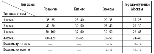 Данные по ценам на конец 2015 г. по Москве приведены в таблице 3.1 (в дальнейшем, естественно, они поменяются).