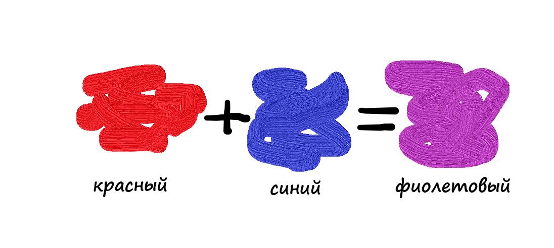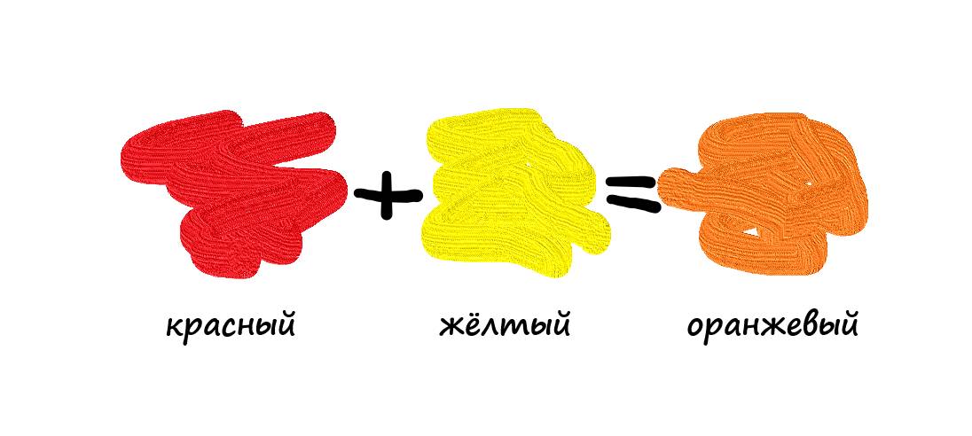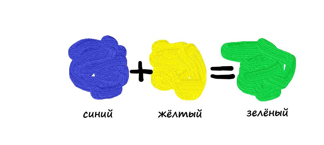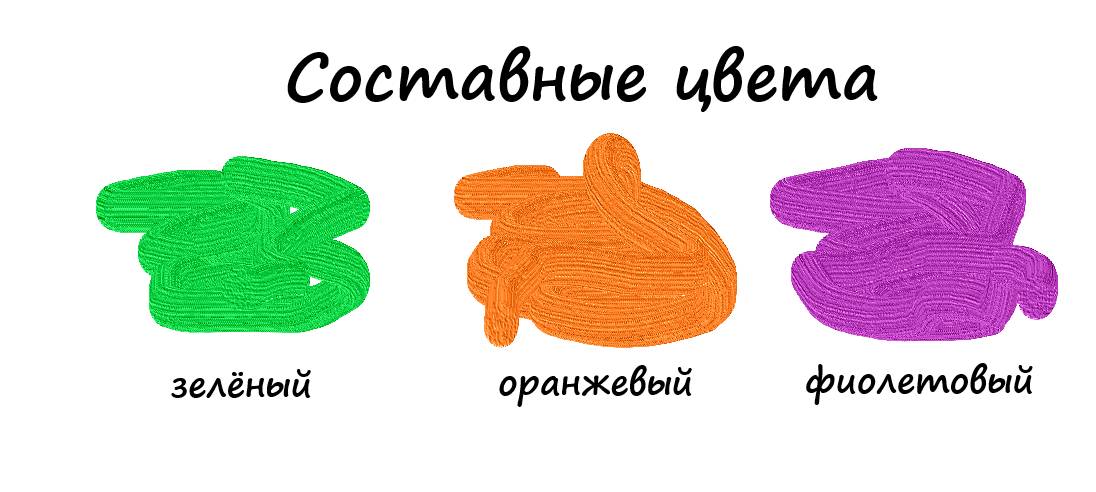 Если смешать между собой ОСНОВНЫЕ, то мы получим цвета, которые называются СОСТАВНЫЕ. Потому что они «составляются» или, правильнее сказать, получаются только при смешивании ОСНОВНЫХ цветов друг с другом, например: