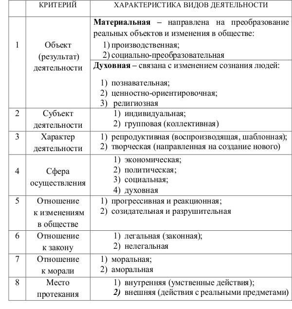 Деятельность – это активность, направленная на достижение сознательно поставленной цели; целенаправленное и осознанное воспроизведение, изменение и преобразование природного и социального мира, присущая только человеку.