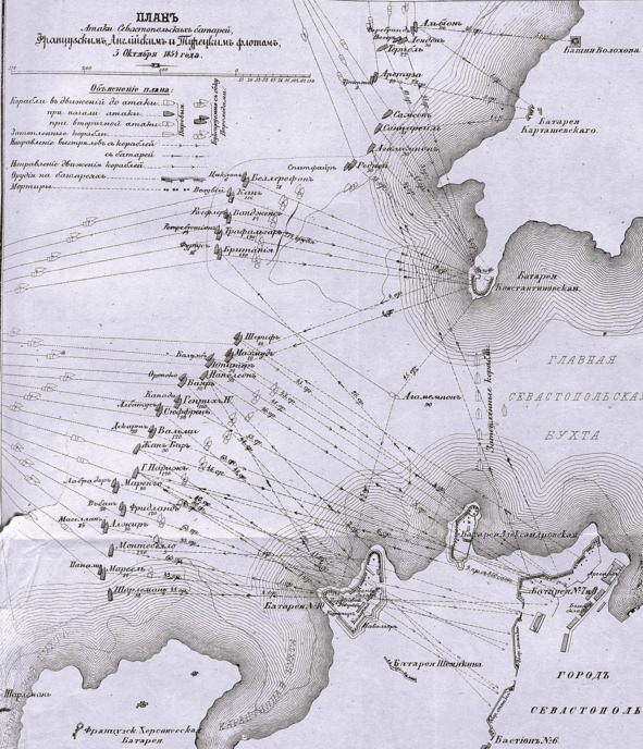 Оставшиеся в бухте корабли умело расставили, и они очень эффективно использовали огонь своих орудий в сочетании с огнем орудий бастионов и батарей.
