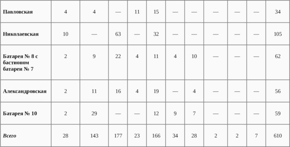 На их правом фланге 746 орудий с одного борта, против наших 33-х орудий батареи №10 и частично 17-ти орудий Александровского форта, плюс 32-х орудий Константиновского форта, что могли стрелять в их направлении. Всего, наших: 73 орудия, их перевес более – 10раз! Притом орудия Александровской форта стреляли с большой дистанции – 1900м.