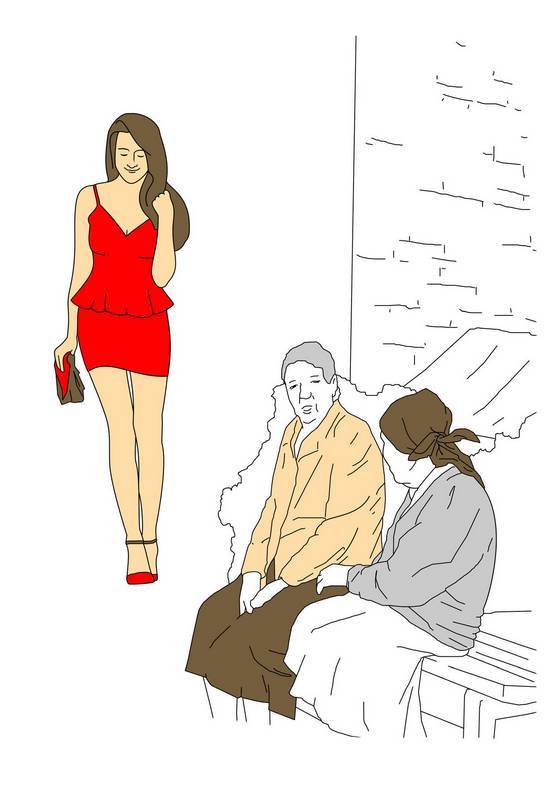 – Ну ты посмотри на неё, посмотри! И куда она собралась? Ивановна, ну ты погляди, погляди, как эта, с восьмой квартиры-то, нафуфырилась! А юбку-то какую надела! Господи, светится, как марля! Там же всё видать! Вот проститутка!