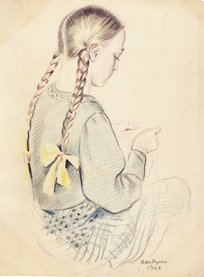 Наталья Громова, известный современный писатель, исследователь литературной повседневности сталинской эпохи, открыла читателю дневники[74] Ольги Бессарабовой[75], которые хранятся с недавних пор (середина 1990-х) в Доме-музее Марины Цветаевой в Москве. На выставке, приуроченной к выходу дневников и переписки брата Бессарабовой Бориса[76] с Цветаевой, были выставлены работы художника Усто Мумина: портрет Надежды Николаевны – жены историка Евгения Алексеевича Косминского, портрет историка Степана Борисовича Веселовского, а также портрет дочери Веселовского и Ольги Бессарабовой Анны Степановны Веселовской; на обороте рисунка надпись, сделанная рукой художника: «Аничка (Степановна)». Все работы подписаны автором: «Усто Мумин. 1943». Все они хранятся в доме Анны Степановны Веселовской.