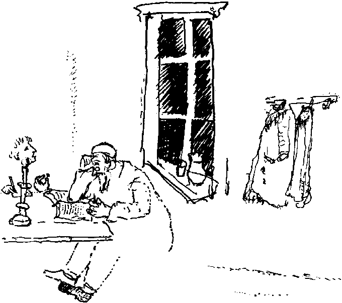 Дядя, раскачиваясь, читает и поет, бормочет и вздыхает.